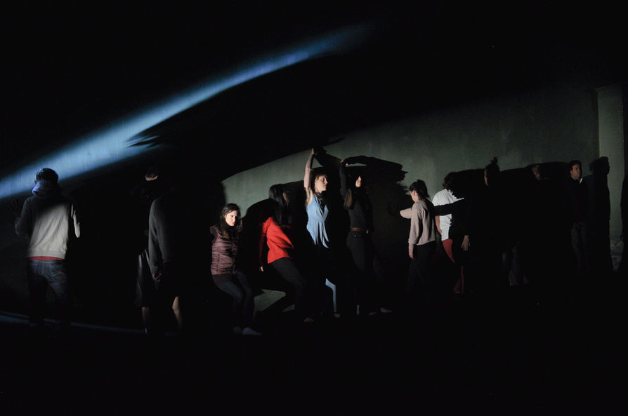 As part of the creative process, the Susurrus group collaborated with Aerocene Foundation, an artistic and scientific community initiated by visual artist Tomás Saraceno. The core of the foundation is the Aerocene Sculpture, a light-weight 6m x 8m sculpture that is inflated by air, lifted only by the sun and carried by the wind. The Susurrus Group coordinated two launches of the sculpture at Hellerau and Ehka-productions to study how its ethereal movement could be translated by human bodies onto the stage. The group were then invited to share their research in a performative workshop at ON AIR: with Aerocene symposium at Palais de Tokyo Museum in 2018.